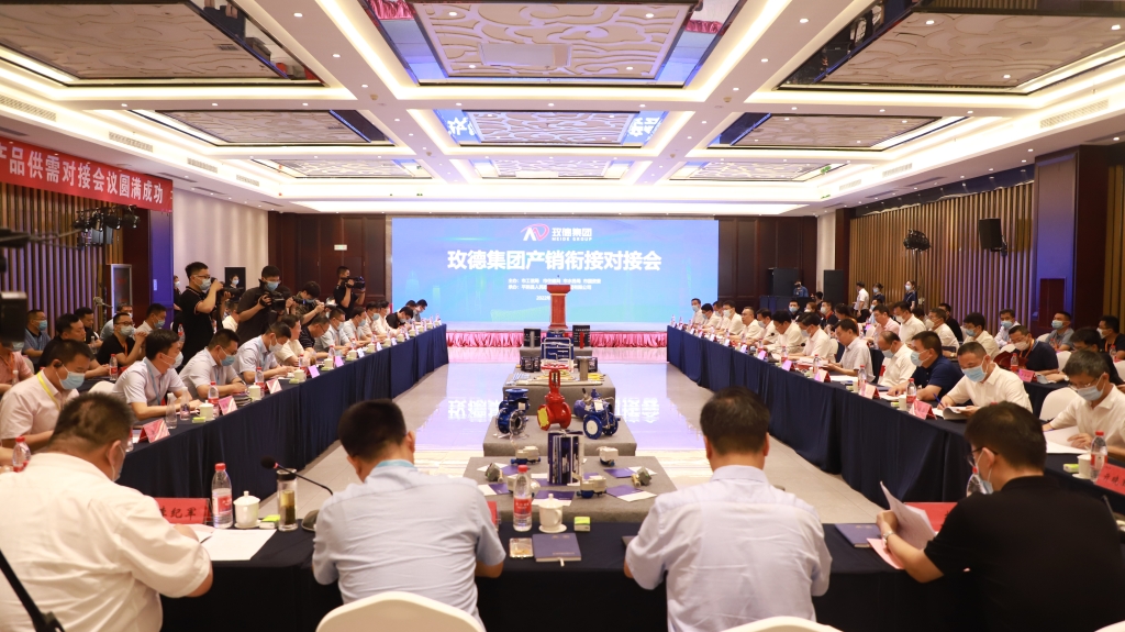 6月9日,玫德集团产销衔接对接会在平阴召开,会议由济南市工业和信息化局、济南市住房和城乡建设局、济南市城乡水务局、济南市国资委主办,平阴县人民政府、玫德集团承办。济南市工信局党组书记、局长汲佩德,济南市城乡水务局副局长赵承忠,济南市国资委副主任纪军,济南轨道交通集团有限公司副总经理、总会计师丁强,济南市住房和城乡建设局市场监督管理处副处长刘哲,平阴县委书记王秀成,平阴经济开发区管委会主任李子元,平阴县委常委、办公室主任姜爱文,平阴县政府副县长李仁峰,玫德集团董事局主席孔令磊及高管团队出席会议。