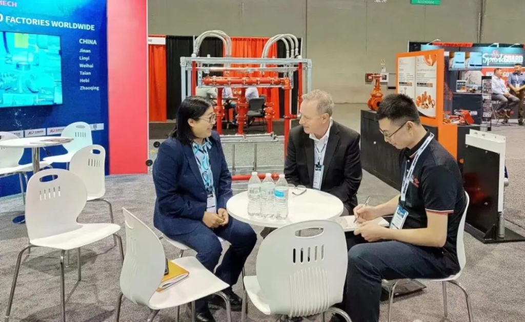 本次国际消防展不仅体现玫德集团产品齐全的优势,还呈现出多样化的服务理念,用以满足客户不同需求。分别有来自北美、南美、中东、欧洲、以及东南亚的客户来访玫德展区,展会共接待新客户60多家、老客户20余家,并达成多单合作意向。
