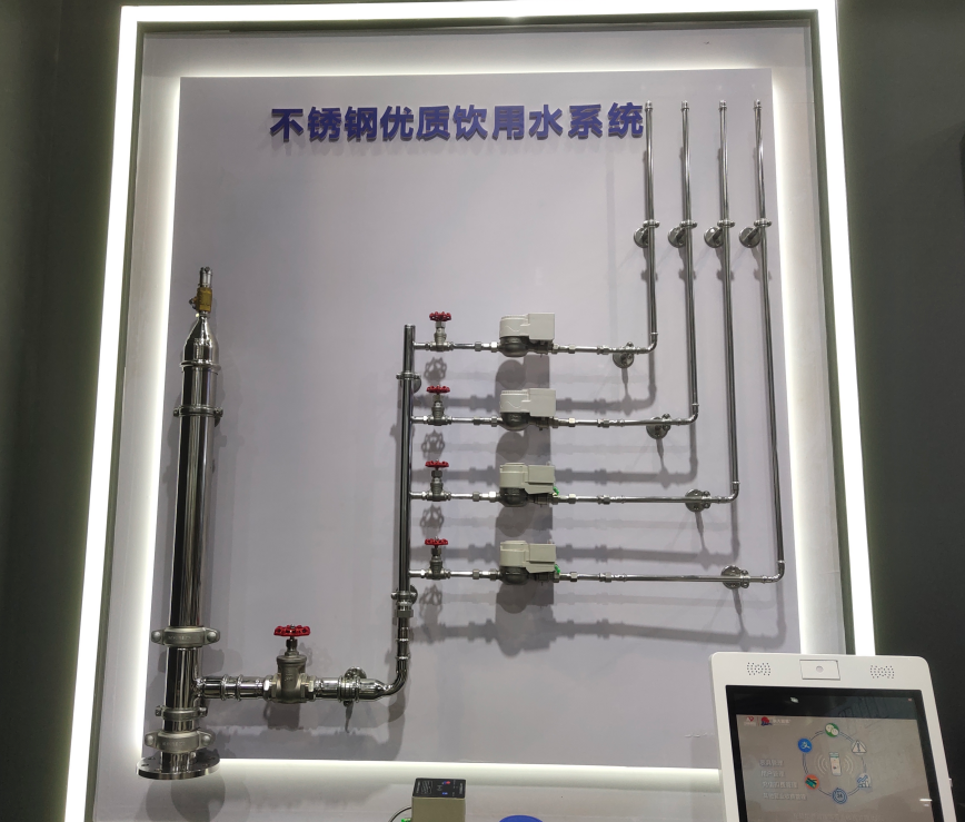 直饮水管路系统整体采用不锈钢材质的管材、管件、阀门、水箱等配件设施。所谓直饮水,就是水嘴接出来的自来水可以直接饮用。目前不锈钢薄壁管材管件,在小区二次供水改造过程中应用得越来越多,比如深圳、武汉、中南、郑州、广州、中山、合肥、昆山等水务公司。