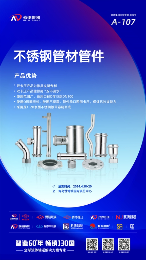 2024水协年会聚焦城镇水务行业现状与高质量发展,玫德集团作为全球领先的流体输送产品制造商和解决方案专家,创立于1961年,目前已发展为以流体输送产品及服务为主的现代化、多元化跨国企业集团,销售遍布全球130多个国家和地区,拥有济南、临沂、泰安、威海、鹤壁、肇庆、泰国、越南、波兰9个海内外生产基地。