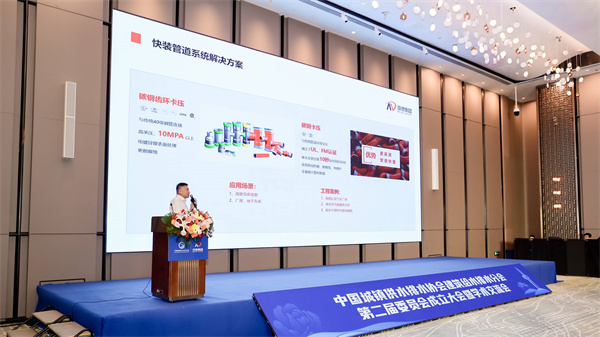 然后山东迈科智能科技有限公司副总经理李英兵做《快速管道系统解决方案》报告:讲到在消防领域,玫德集团拥有软硬兼具的一站式流体输送解决方案,从水箱到管道、阀门直至末端喷淋装置全系列产品,配合智慧消防系统能够实现消防应急智能化、消防维护数字化。