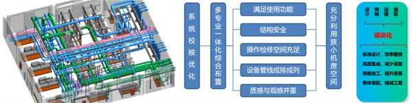 基于BIM模型的高精度、可视化特点,将水泵、阀部件、管道、支吊架进行一体化整合设计,形成循环泵组装配单元和预制管组装配单元。