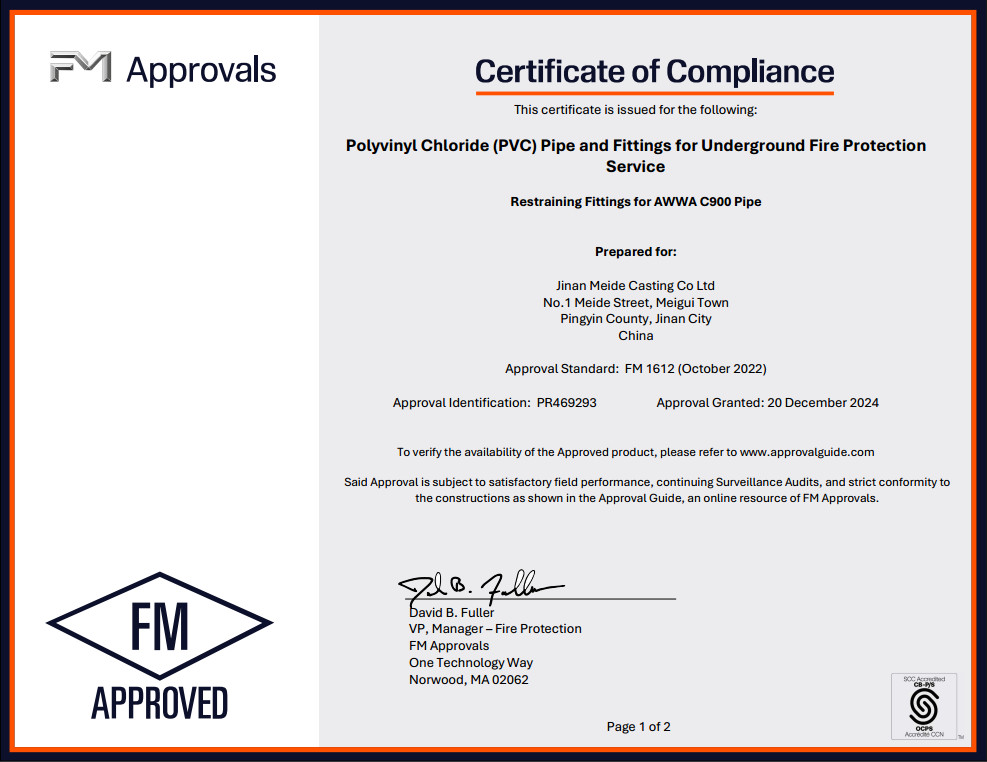 Meide Ductile lron Pipe and Fittings, Flexible Fittings and Couplings has been approved by FM